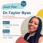 WWFaC is thrilled to announce we will be hosting award winning poet Dr. Taylor Byas 10/11 & 10/12! Dr. Taylor Byas is a Black Chicago native […]