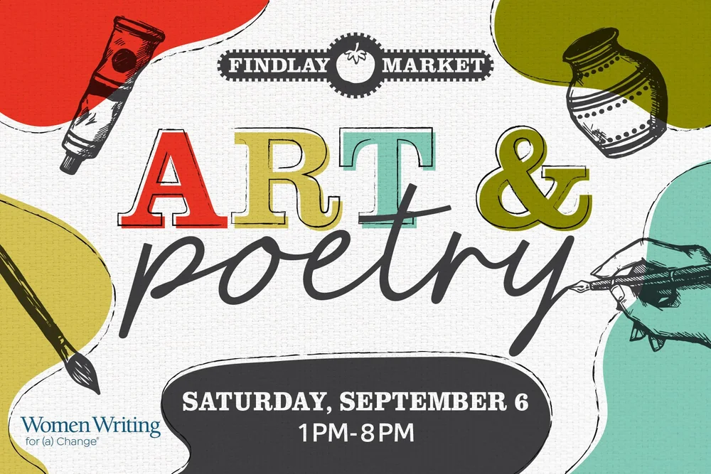 loading… Women Writing for (a) Change is the sponsor of Art & Poetry at Findlay Market– an annual FREE celebration of the creative arts. Spend the day making art with friends, watch live performances throughout the day, and sign up to participate in the Poetry Slam! Showcase your original poem for a chance to win