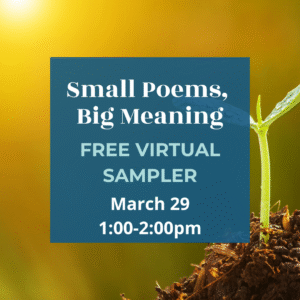 This is a free sampler for the Small Poems, Big Meaning: Exploring the Power of Brevity in Poetry & Prose class that begins April 19.